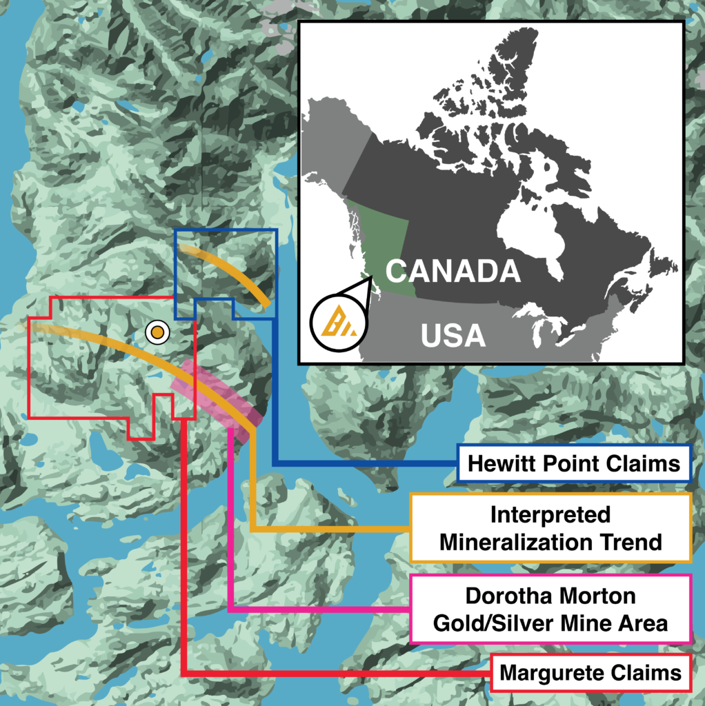 Bedford Metals proudly owns a 100% interest in the Margurete Gold Project, located approximately 200 kilometers northwest of Vancouver in southwest British Columbia.